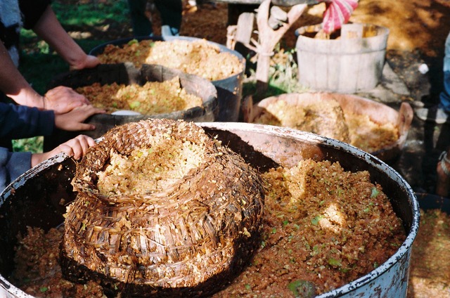 Al final del verano, o al principio del otoño, las personas en Chiloé cosechan sus manzanas para poder hacer chicha. Colocan las herramientas para la maja en el patio de la casa, juntando vecinos participan a la maja, ya que entre todos se avanza más; con mucha energía rellenan los canastitos hechos a mano con manzanas ralladas, para que vayan entre las pesadas tablas de la prensa. Las manos pican un poco con el jugo fresco de manzana, y la piel se mancha con la pulpa que cambia color, pasando de blanca a naranja. Los chanchos se acercan al residuo seco de manzanas exprimidas, comen enérgicamente todo lo que pueden, y al rato se nota que están un poco mareados! Ellos también disfrutan de la chicha de manzana.